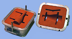 Beide Modellhälften sind mit der Formplatte in einem Stück aus Epoxyd-Werkzeugharz gefertigt, wie dies in Gießereien für größere Serien üblich ist. Es ist kein Trennmittel erforderlich.