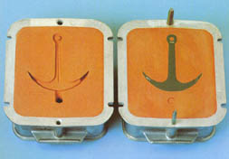 Der Anker, ebenfalls ein zweiteiliges, aber symmetrisches Model, zeigt durch die sehr geringe Wandstärke die Grenzen des Sandgussverfahrens.